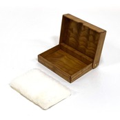 フライフィッシングの毛鉤用や旅行に持っていくアクセサリーを入れたり、温かみのあるムートン敷のあられ組みの軽いアクセサリーケース。