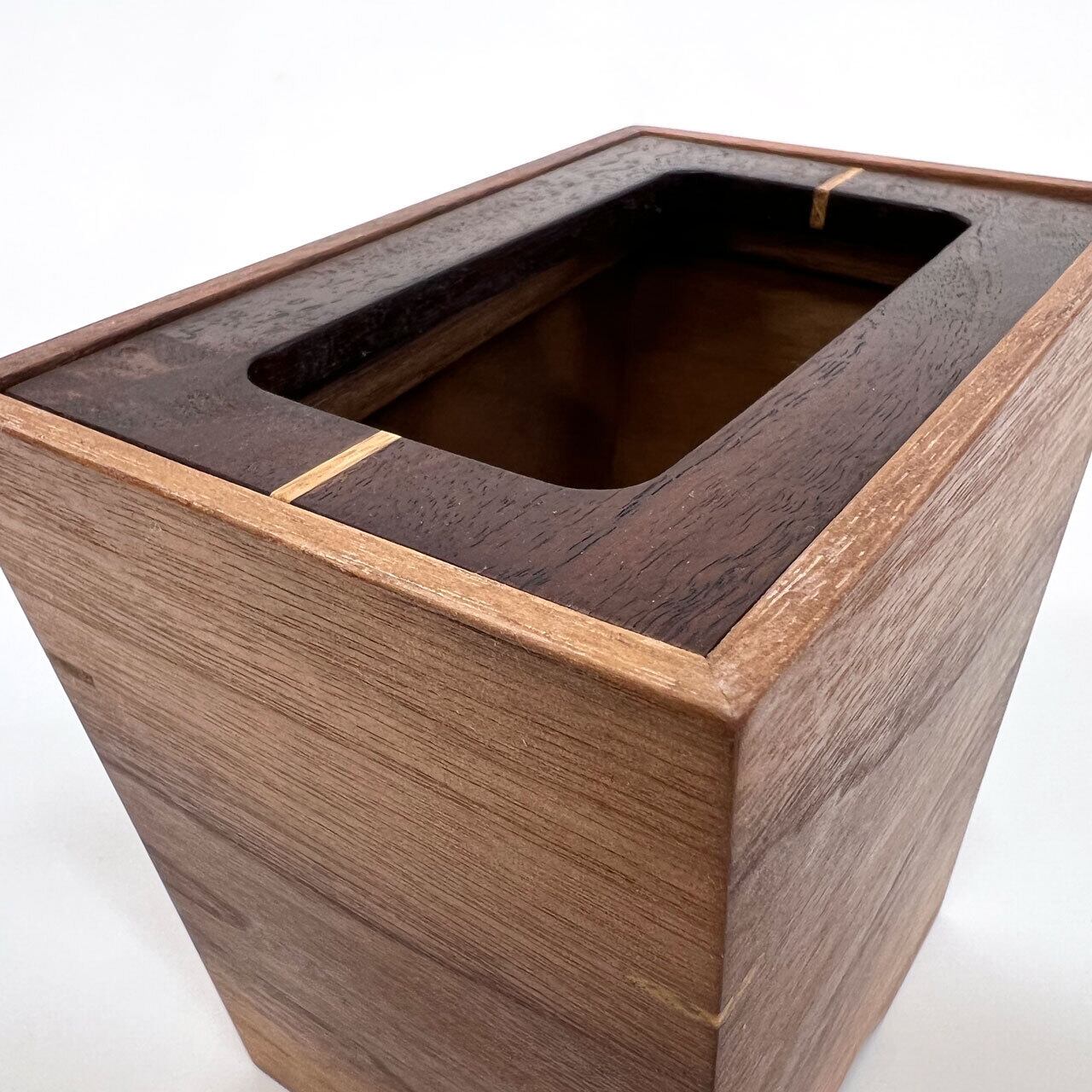デスクトップやベッドサイドなどにぴったりな斜め留め継ぎのトラッシュッボックスです。